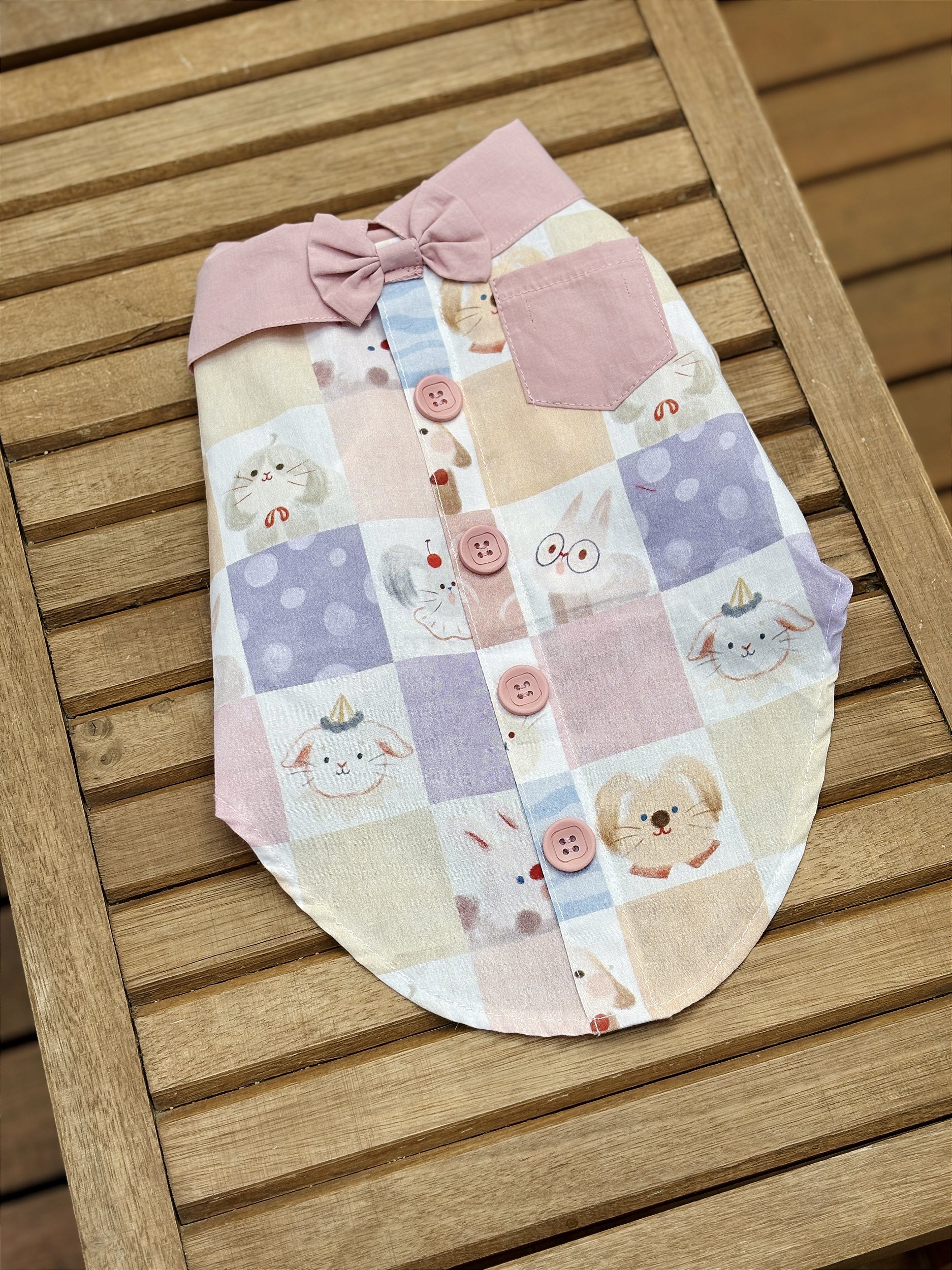 Camisa Ursinhos com Bolso e Gravata Rosa Empoeirado